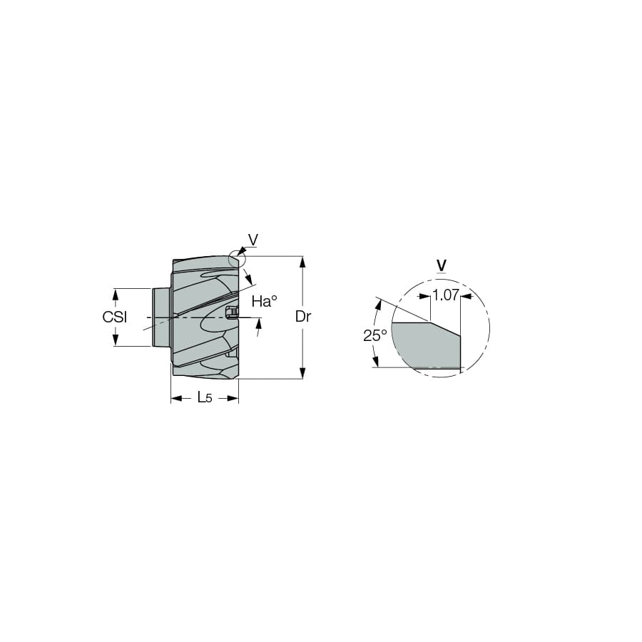 - Grade IC908 - Substrat dur à grains fins avec excellente résistance à l'écaillage combiné à un revêtement TiAlN PVD Offre une grande résistance à l'usure et à l'oxydation Recommandé pour une très large gamme d'applications et de conditions d'usinage Têtes d' alésage avec mécanisme à baïonnette à changement rapide pour tolérance des trous H7 haute vitesse 8 cannelures 25 degrés chanfrein 1 07 mm largeur de chanfrein BN9 taille de connexion 12 9 mm longueur de cannelure 20 degrés Code ISO : RM-BN9-31.000-H7LB