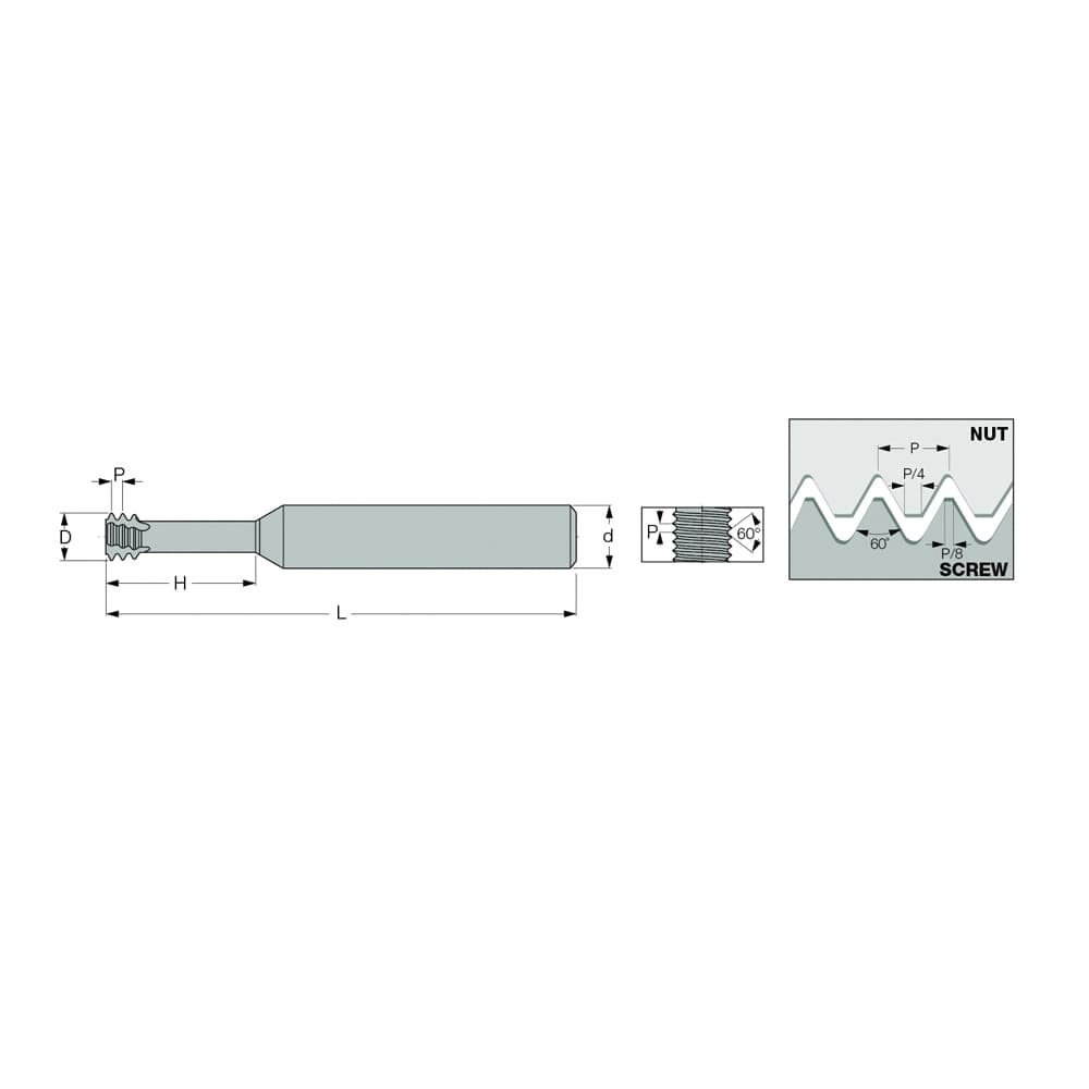 Iscar 5605830 Fraise à filetage court à petit diamètre filetage 1/2-13 3 po OAL 3 cannelures queue 3/8 po de dia