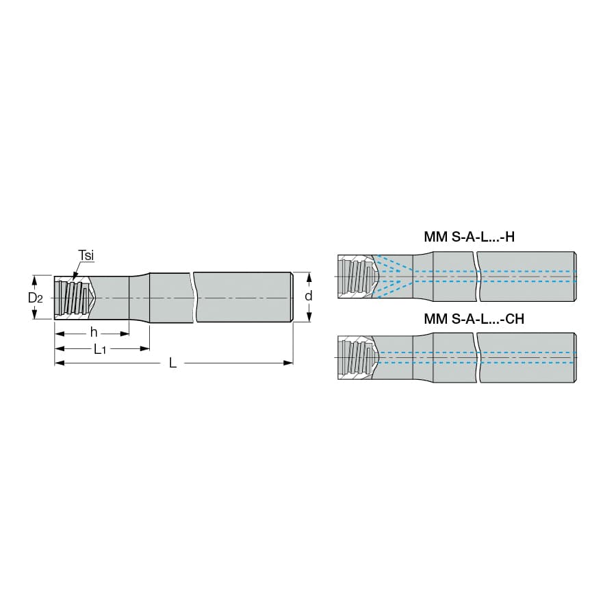 Porte-plaquette pour pointe de fraisage Iscar Série : MULTI-MASTER Porte-outil MM S-A tige cylindrique étagée 1/2 po de diamètre 0 6 po de longueur totale 3 54 po de longueur hors tout Porte-outil en acier Filetage à col T08 diamètre de col 0 48 po longueur de tête 0 53 po