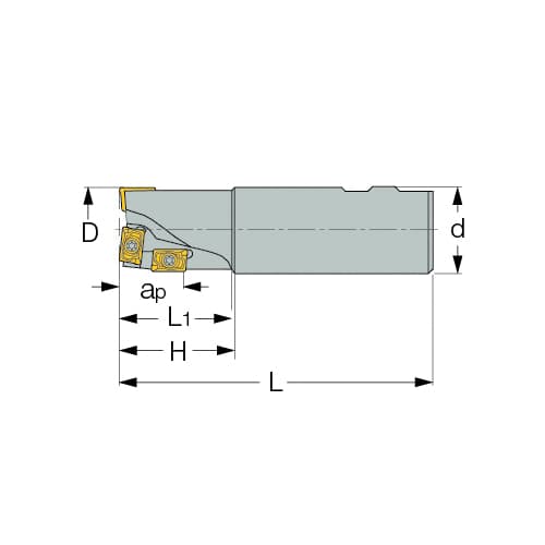 Fraise à bout indexable Iscar série : HELIMILL coupe de 1 po de diamètre 4 33 po de longueur hors tout 3/4 po de profondeur maximale de coupe 3 plaquettes compatibilité des plaquettes : AP.T 1003.. APKT et ADKT longueur de tête 1 97 po diamètre de la tige 1 po tige soudée code ANSI : E90AC D1.00-.75W1.0 code ISO : E90AC D1.00-.75W1.0 liquide de refroidissement non traversant