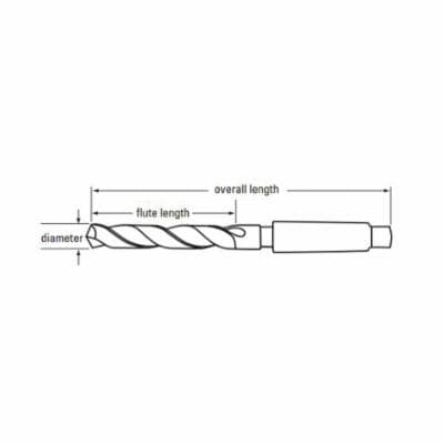 Foret à queue conique Chicago-Latrobe® Robuste Série : 2440 Imperial Forage 15/16 po - Fraction 0.9375 in Drill - décimal pouce 1-3/4 po de longueur hors tout 6-1/8 de profondeur de coupe 2 cannelures cannelure en spirale 6-1/8 dans la longueur de cannelure #3 Morse Shank Shank Designation 135 degrés Point Point d'encoche Direction de coupe à droite M42 HSS-Co 8 arête de coupe sans caloporteur M42 HSS-Co 8 oxyde de paille matériaux applicables : acier allié à outils acier au carbone fonte et acier inoxydable