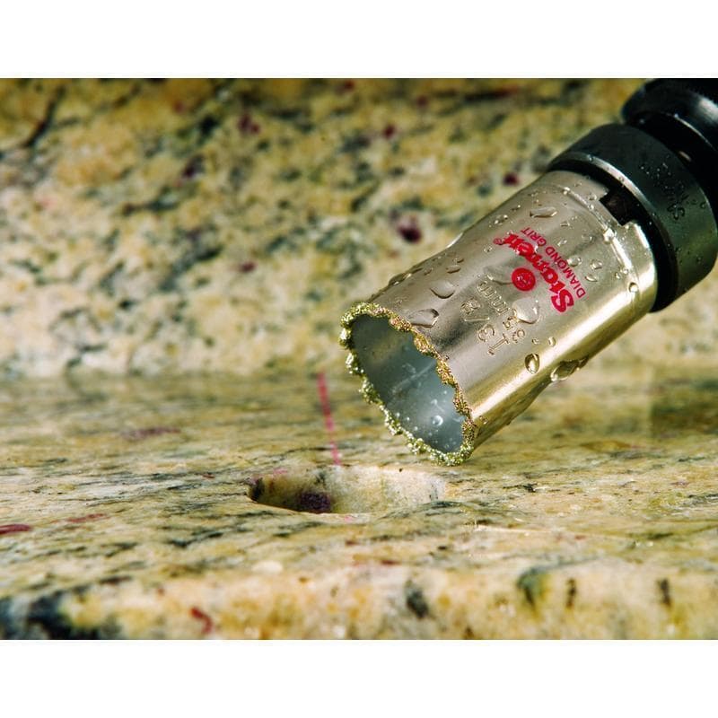 Scie à trous Starrett® usage général haute performance 5/8 po de diamètre profondeur de coupe 1-5/8 arbre 1/2-20 arête de coupe diamantée corps de diamant arête de coupe diamantée vitesse de 175 à 800 tr/min 3/8 po mandrin 1/4 po arbre d'utilisation : A1/A4 argent matériaux applicables : céramique porcelaine verre pierre fibre de verre brique et maçonnerie