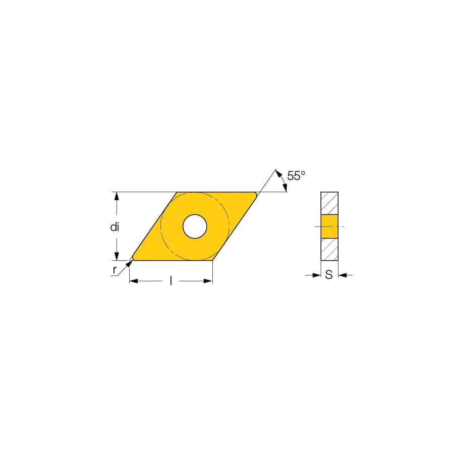 Insert de tournage Iscar 1 face série : ISOTURN insert DNMS plaquette 432 rhombique profondeur de coupe maximale de 4 mm cercle inscrit de 12 7 mm épaisseur de 4 76 mm 15 sièges râteau positif rayon d'angle de 0 8 mm diamètre de trou de 5.1562 mm grade du fabricant : IC20 Code ANSI : DNMS 432-12 IC20 Code ISO : DNMS 150408-12 IC20 55 Deg Inclus Angle Angle De Décharge De 0 Deg Carbure Non Revêtu Grade : H K M N S Pour utilisation sur : Acier inoxydable Fonte Acier trempé Alliages à haute température et Aluminium