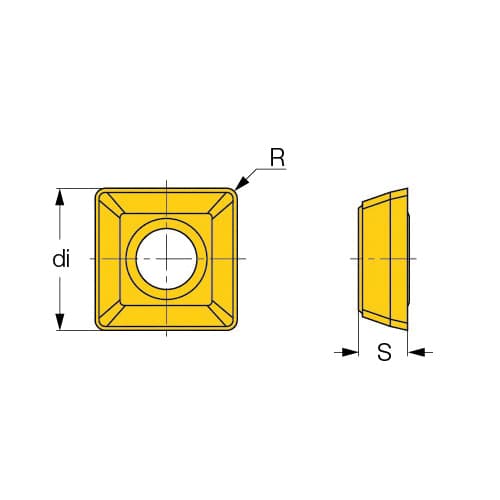 Inserts amovibles Iscar un côté série : DR-TWIST insert SOMT insert 09T306 carré cercle inscrit de 9 mm épaisseur de 3 81 mm largeur 9 mm longueur 9 mm brise-éclats GF rayon d'angle de 0 6 mm diamètre de trou 0 133 grade du fabricant : IC908 angle inclus à 90 degrés Code ISO : SOMT 09T306-GF IC908 Matériaux souples À utiliser sur Carbure revêtu de PVD-Tialn Grade : C1 C2 C6 C7