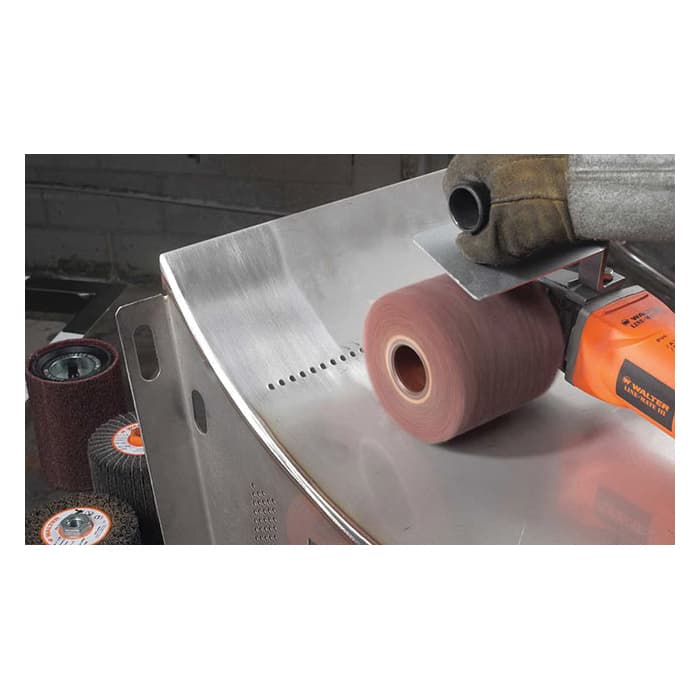 Walter Surface Technologies Blendex" Non-Woven Deburring Drum High Density Unmounted Series: Line-Mate 4-1/2 in Wheel Diameter 2 in Face Width Coarse Grade Aluminum Oxide Abrasive 3800 rpm Maximum 5/8-11 Center Hole Threaded No Interleaf Threaded Attachment