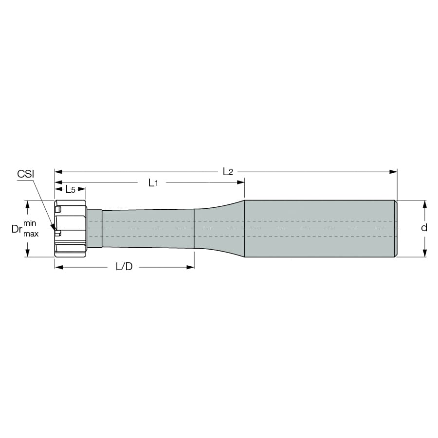 Iscar 4445511 RM-BNT Axial Clamping Shank 1 in Mini Reamer Dia 1.26 in Dia Max Reamer Straight Shank 2.36 in L Flute For Use With RM-BN9-1.0000-H7LB RM-BN9-1.0000-H7SA RM-BN9-1.2500-H7LB and RM-BN9-1.2500-H7SA Reaming Head