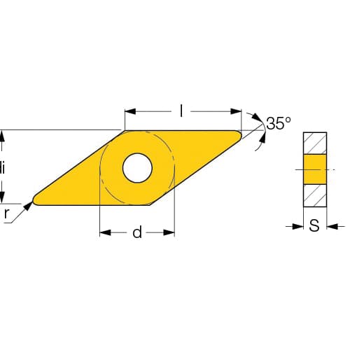 Iscar Turning Insert 1-Sided Series: ISOTURN VNMS Insert 332 Insert Rhombic 3.5 mm Maximum Depth of Cut 9.52 mm Inscribed Circle 4.76 mm Thickness 16 Seat Positive Rake 12 Chipbreaker 0.8 mm Corner Radius Manufacturer's Grade: IC20 ANSI Code: VNMS 332-12 IC20 ISO Code: VNMS 160408-12 IC20 35 deg Included Angle 0 deg Relief Angle Carbide Uncoated Material Grade: H K M N S For Use On: Stainless Steel Cast Iron Hardened Steel High Temperature Alloys and Aluminum
