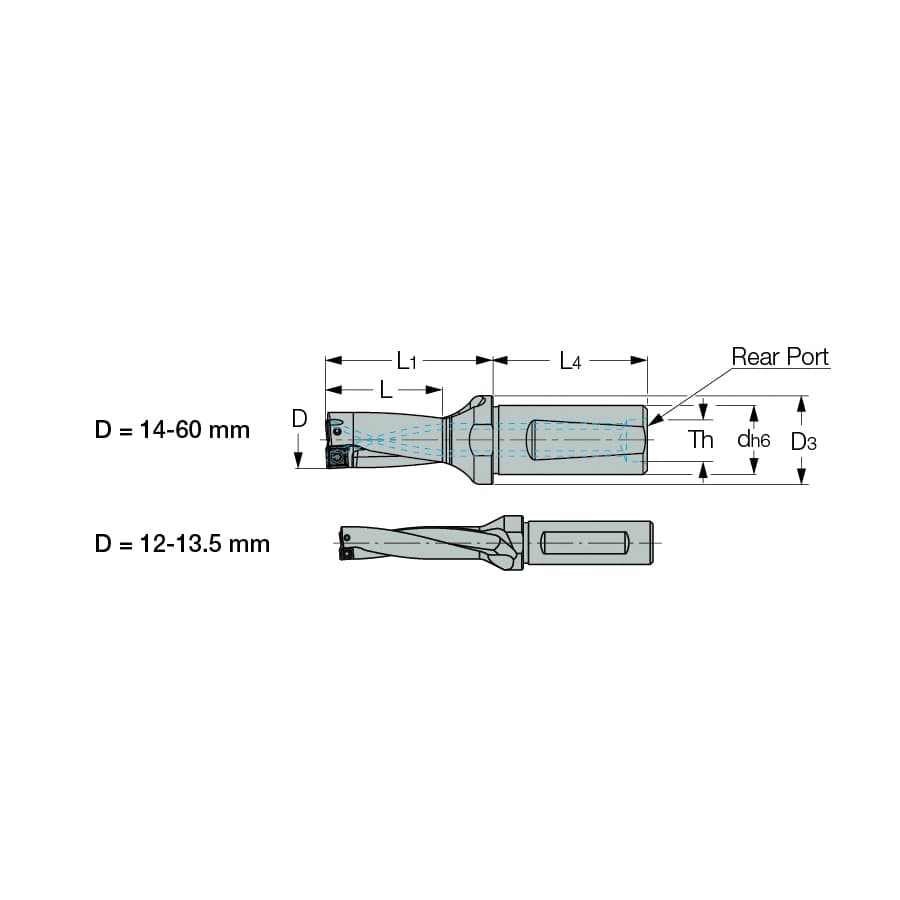Iscar Indexable Insert Drill Series: DR-TWIST 26 mm Drill 25 mm Shank Dia 56 mm Shank Length Whistle Notch Shank 32 mm Modular Connection Size SOGX/SOMX Insert 96 mm Maximum Drill Depth 172 mm Overall Length 24 mm Dia 4XD Drill Depth by Dia Ratio Insert Compatibility: SOGX/T-AL SOMX-DT SOMX-GF SOMX-HD 96 mm Flute Length Yes Through Coolant (Yes/No)