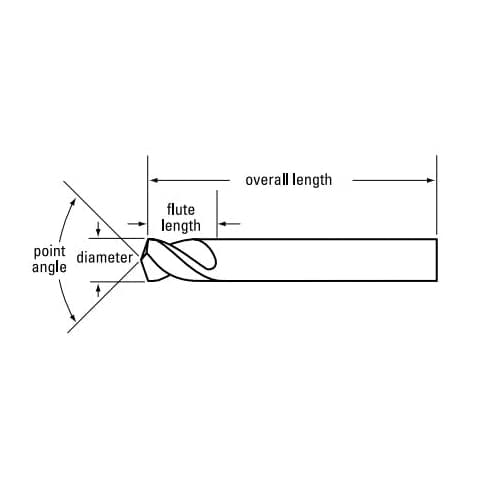 Cleveland® Spotting and Centering Drill Heavy Duty Short Length Series: 2636 E Letter/Wire 2-1/2 in Overall Length 1 in Cutting Depth 2 Flutes Spiral Flute 1 in Flute Length 1/4 in Shank Straight Shank 120 deg Point Radial Point Right Hand Cutting Direction M42 HSS-Co 8 Cutting Edge M42 HSS-Co 8 Gold/Straw Oxide Applicable Materials: Alloy Tool Steel Aluminum Carbon Steel and Stainless Steel