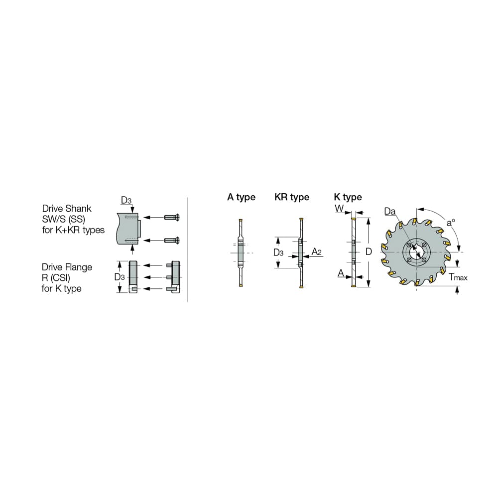 Iscar Indexable Slitting Cutter Series: SELF-GRIP 250 mm Cutting Dia 84 mm Maximum Depth of Cut GSFN Insert ANSI Code: SGSF 250-5-40K