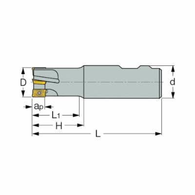 Iscar Indexable End Mill Square Shoulder Series: HELI2000 1-1/2 in Cutting Dia 9.84 in Overall Length 0.56 in Maximum Depth of Cut 3 Inserts 1.97 in Head Length 1-1/2 in Shank Dia Cylindrical Shank ANSI Code: HM90 E90AD-D1.50-3-C1.50B ISO Code: HM90 E90AD-D1.50-3-C1.50B 90 deg Lead Angle No