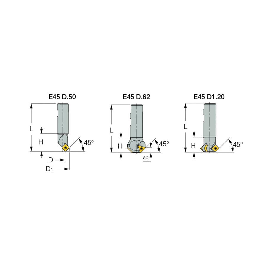 Iscar 3110003 Chamfer Angle Indexable End Mill ANSI Code: E45 D.50-W.75 SDMT-AD-N Insert 0.472 to 0.91 in Dia Cutting 0.22 in Max Depth of Cut