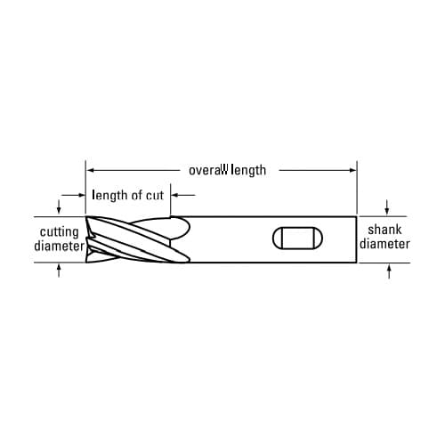 Cleveland® PM-Plus" C31984 PM-4 Center Cutting Single End Square End High Performance End Mill 1-1/4 in Dia Cutter 2 in Length of Cut 6 Flutes 1-1/4 in Dia Shank 4-1/2 in OAL TiN Coated