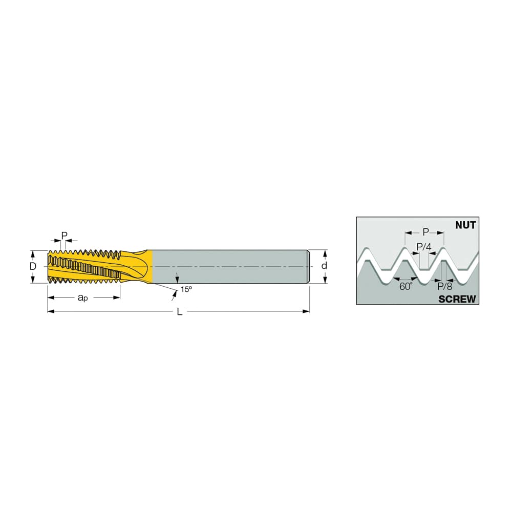 Iscar Thread Mill 1/2-13 UNC 0.31 in Cutting Dia 0.9 in Length of Cut 2-1/2 in Overall Length 3 Flutes Cylindrical Shank 0.312 in Shank Dia Solid Carbide PVD Coated
