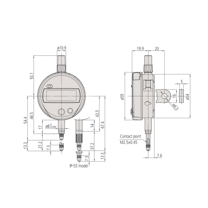 Mitutoyo ABSOLUTE® Digimatic Indicator Flat Back Inch/Metric Series: ID-S 543 1/2 in/12.7 mm Measuring 0.00012 in Accuracy 0.00005 in/0.001 mm Resolution 6-Digit LCD Display </ 2 N Measuring Force SR44 Battery