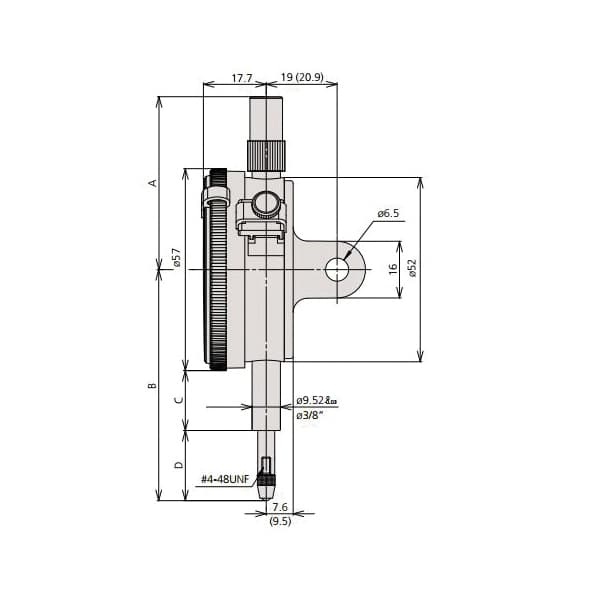 Indicateur de cadran Mitutoyo Inch Lug Back Standard Série : 2 Série 0.05 po 0 à 5 à 0 Cadran Graduations : 0.0001 in Cadran 57 mm Cadran Blanc #4 -48 UNF Pointe Acier Inoxydable