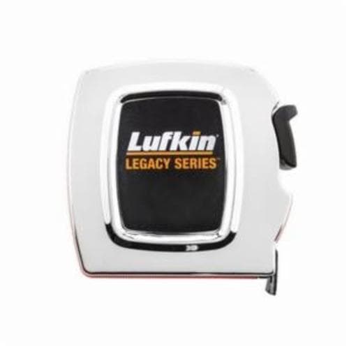 Ruban à mesurer CRESSENT Lufkin® série : Legacy" Système de mesure : Imperial longueur de lame de 16 pi largeur de lame de 1 po graduations : consécutives au 16e noir et rouge sur un côté 8 pi verrouillage par bouton crochet à rivet quadruple boîtier chromé